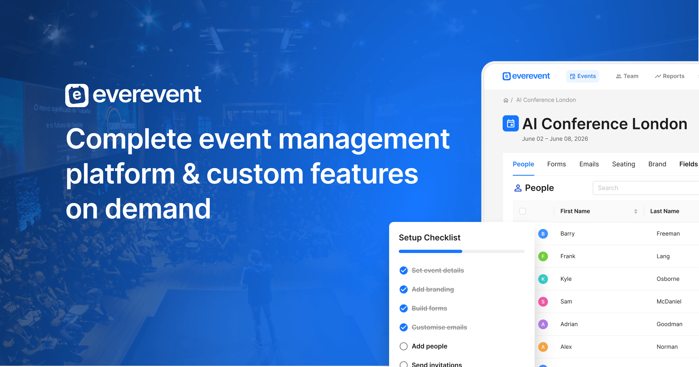 Everything you need to run events out of the box, plus unlimited custom development to build exactly what your business requires.